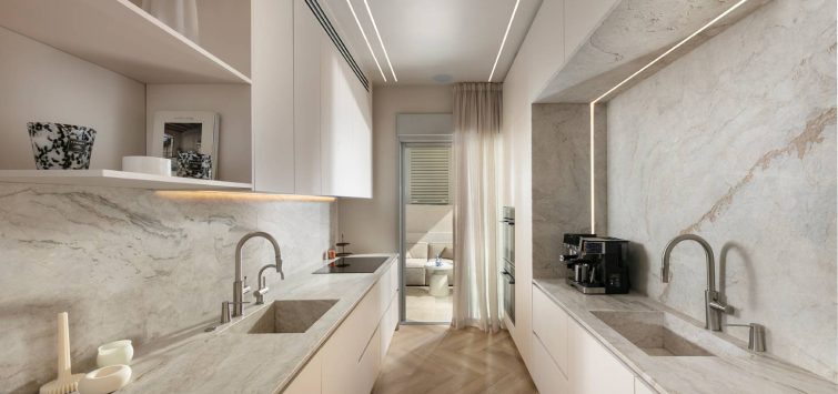 מטבח בעיצובה של האדריכלית המוכשרת סנדי ברודנר. בפרויקט זה נעשה שימוש בלוחות קוורץ טבעיים שלנו- טאג' מאהל.