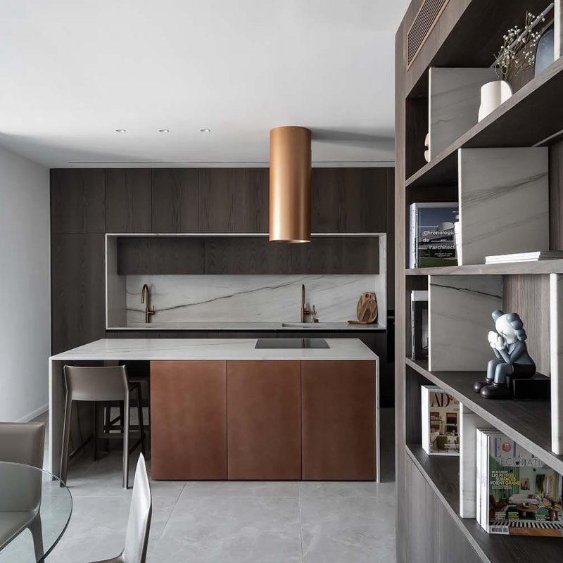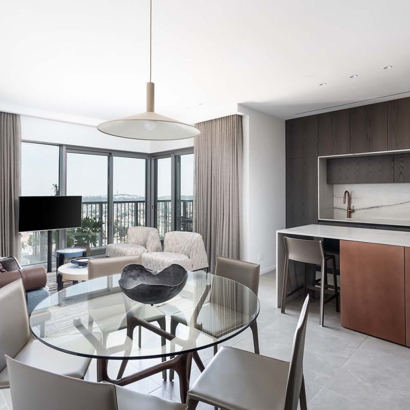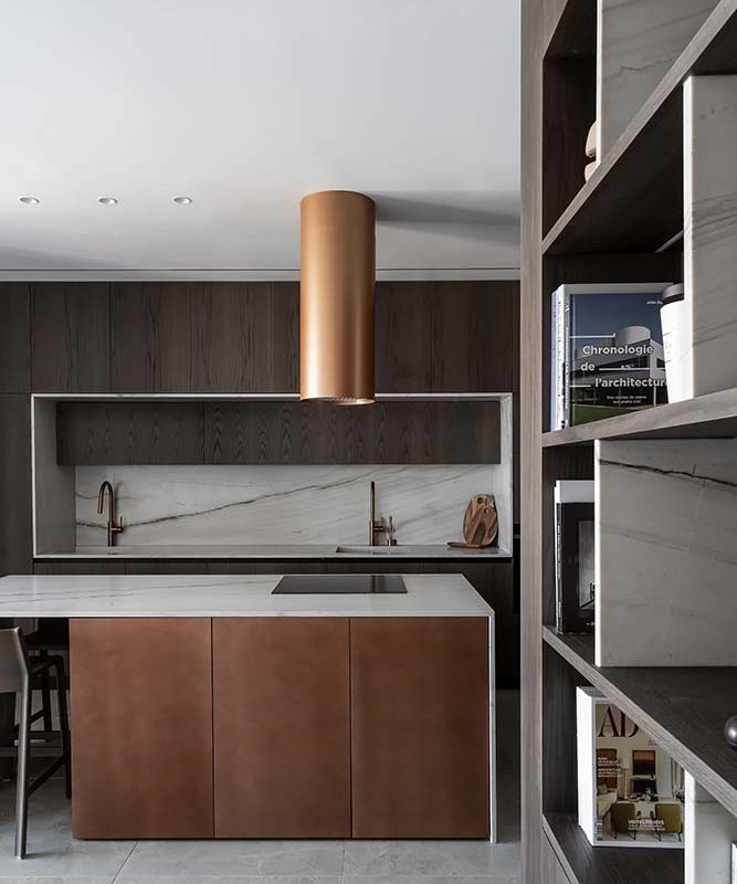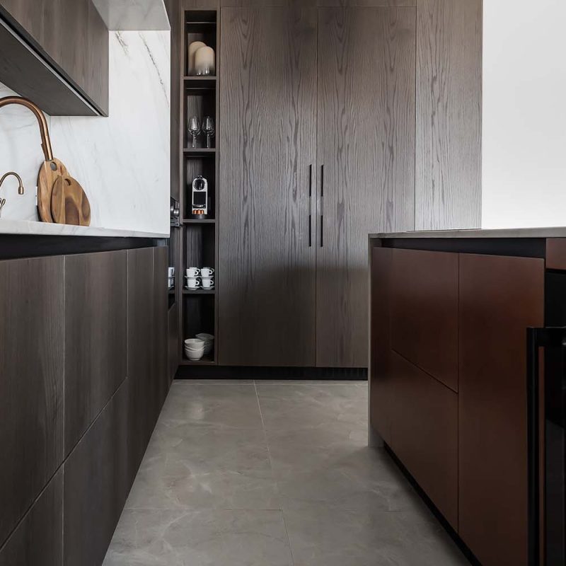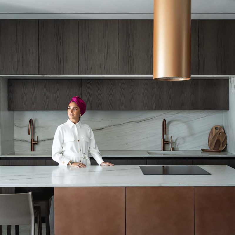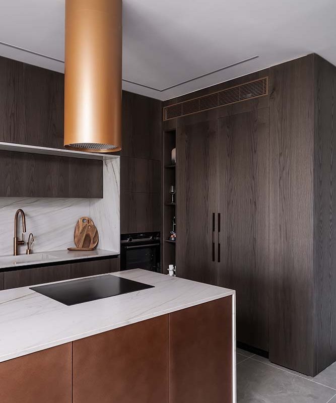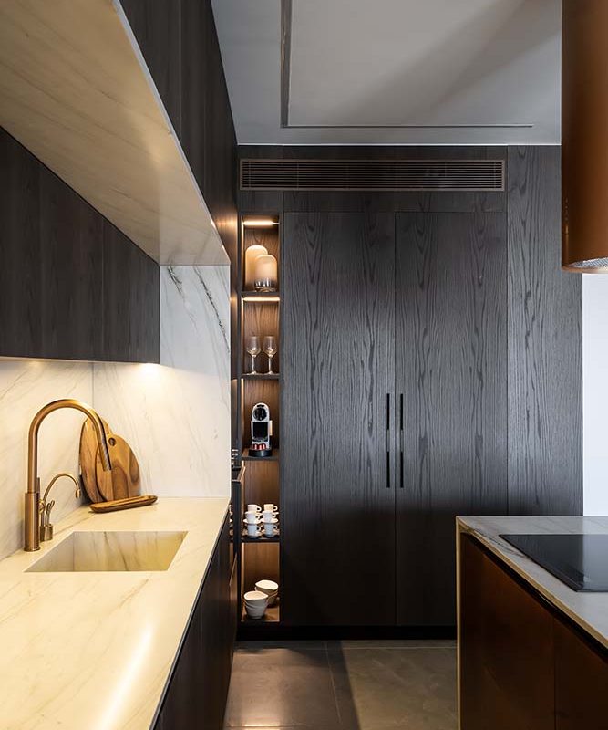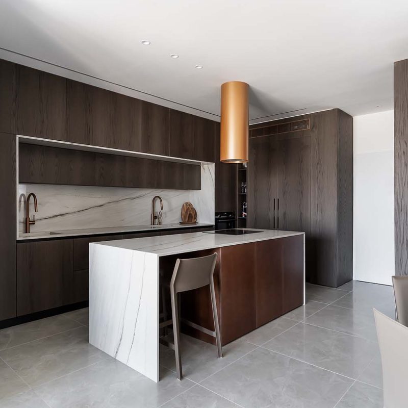 פרויקט משטח שיש טבעי למטבח קולקציית טרה, אבן טבעית, אבן בהירה עם גידים עדינים מסוג קוורציט – מונטנה מהקולצייה, עיבוד מוברש מושלםאדריכלית: קרן בן שטרית