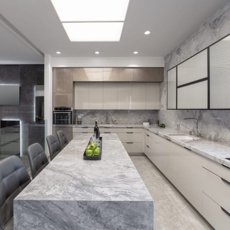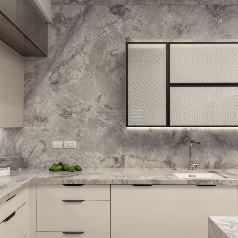 משטח שיש למטבח מסוג קוורץ סופר וייט של מטבחי אורכיד בעיצובן החלומי של בילהה ואביטל